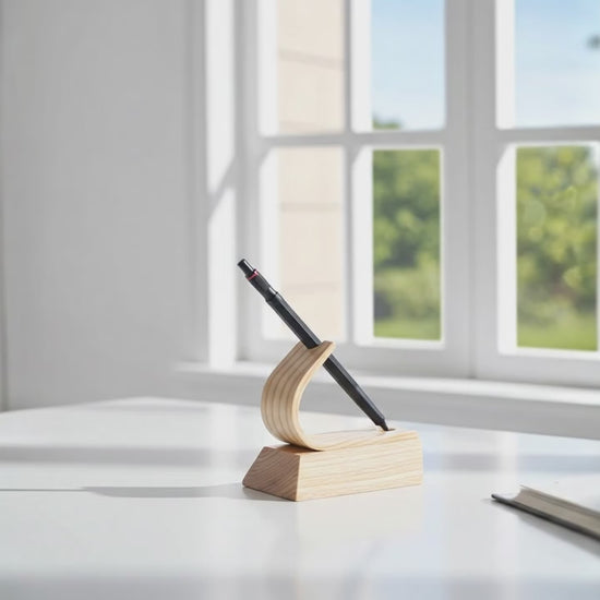 Showcase your finest writing instruments with this handcrafted ash pen holder – a stunning fusion of British craftsmanship and minimalist Swiss-inspired luxury. Each piece is meticulously steam-bent from solid prime-grade ash, creating an elegant curved silhouette that cradles your fountain pen or luxury pen with precision.